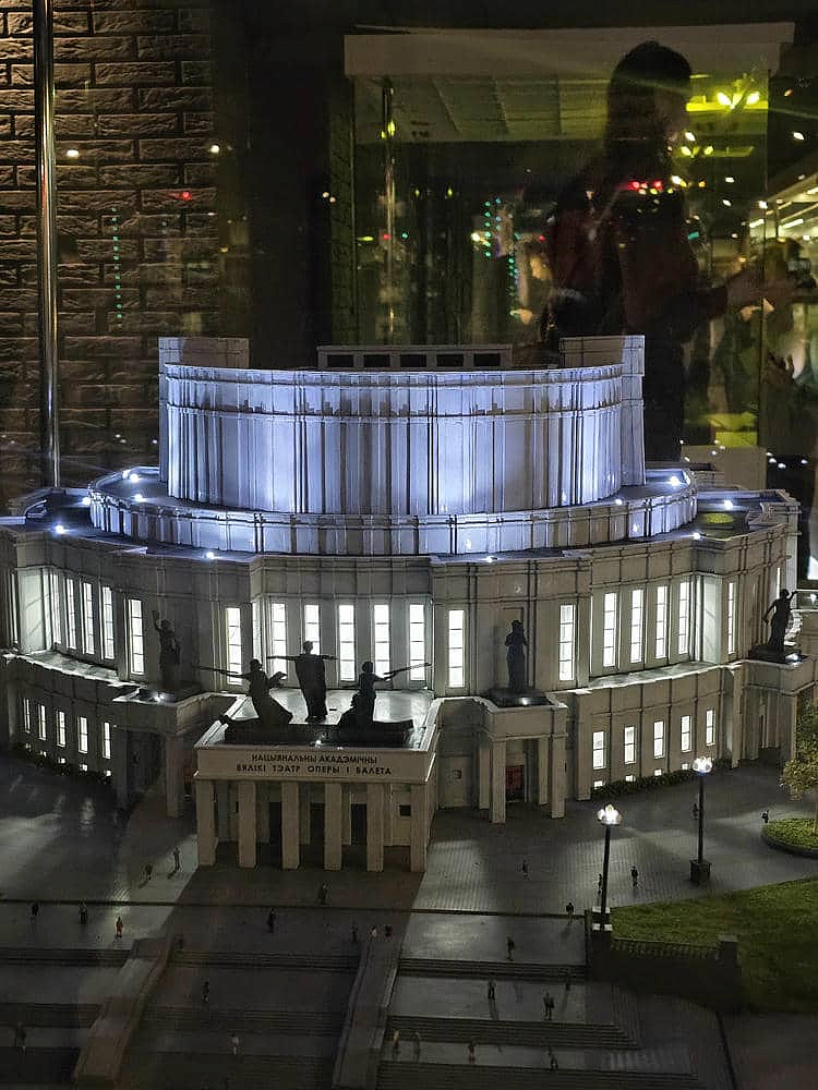 В экспозиции представлены миниатюрные копии архитектурных памятников и природных красот Беларуси: Брестская крепость, Мирский замок, Несвижский дворец, Свято-Успенская церковь, Национальный театр оперы и балета, Беловежская пуща и многие другие.